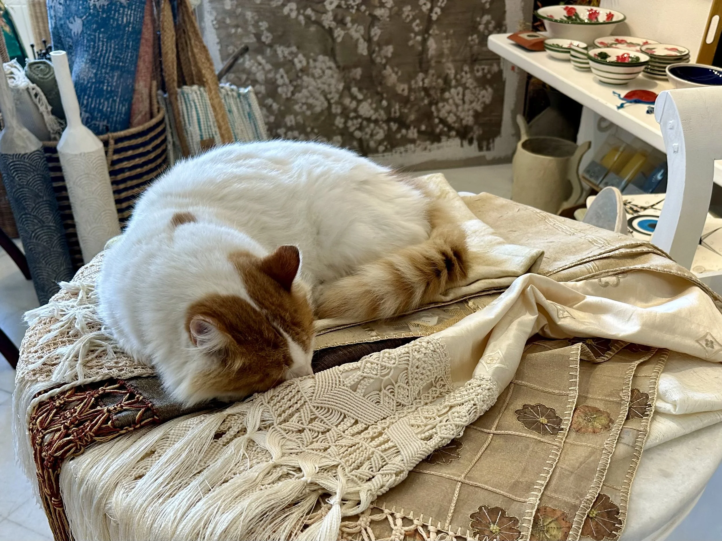 Greeks love cats, and they roamed freely everywhere. Some say they bring good luck and ward off evil spirits, and to be sure I never saw a single rat in Greece. In these modern times, I think the people just enjoy having them around. They were definitely more like stray cats than feral cats; though they lived in the streets, they were well-fed and content. They generally ignored us, except for the cat in Paros that boldly staked a claim on Amy’s lap. Even Steve, who doesn't like cats, didn’t mind the Greek cats.